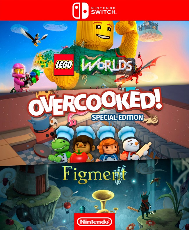 3 juegos en 1 Lego Worlds mas Overcooked Special Edition mas Figment - Nintendo Switch